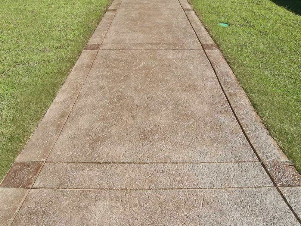 John and Gomez texture the walk way with pattern rollers. These rollers create a granite pattern. Later we will stain and seal the concrete.