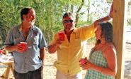 I love my realtor. Pat with Patricia Williamson Properties takes a swig and a hug for helping the Baileys find their piece of paradise on East Bay.