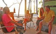 JP, Johanna, Terri, and her neighbor discussing something seemingly important.